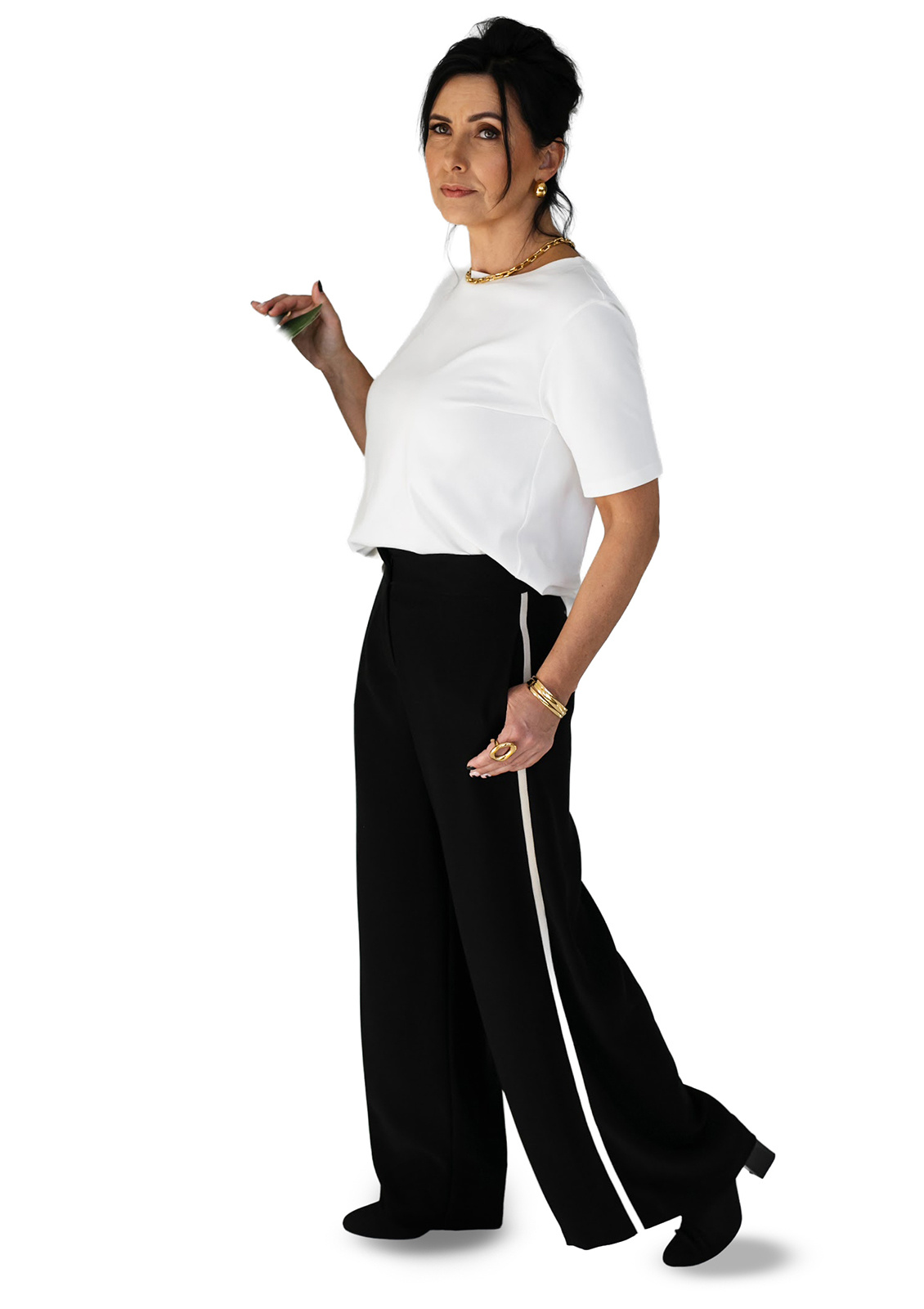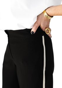 Elegant with a dynamic touch — these black suit trousers, featuring a subtle contrast stripe along the side seam, combine classic style with freedom of movement. The straight-cut silhouette enhances posture, while the supple suiting fabric ensures all-day comfort. Trousers that work equally well in the office or during weekend outings.