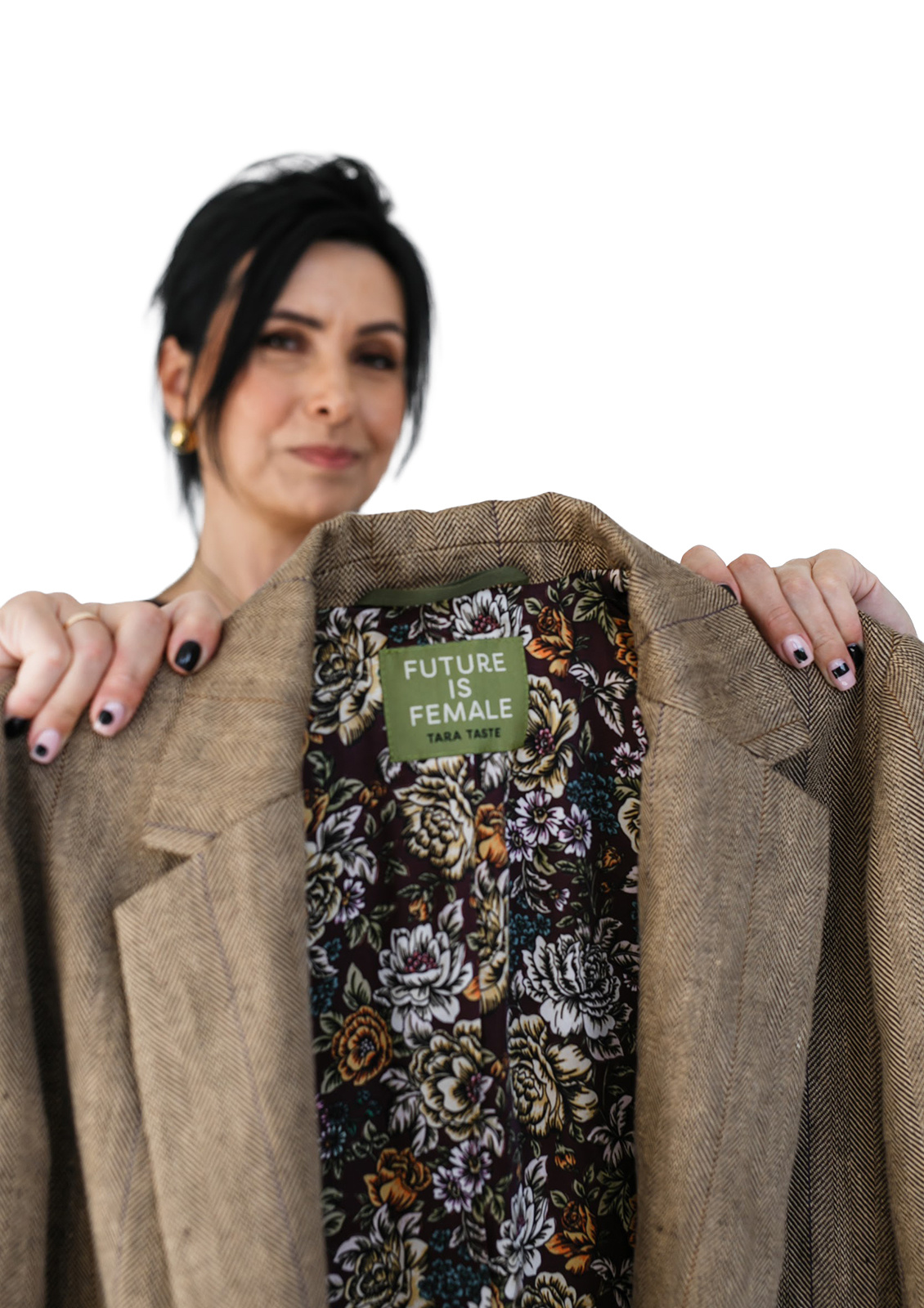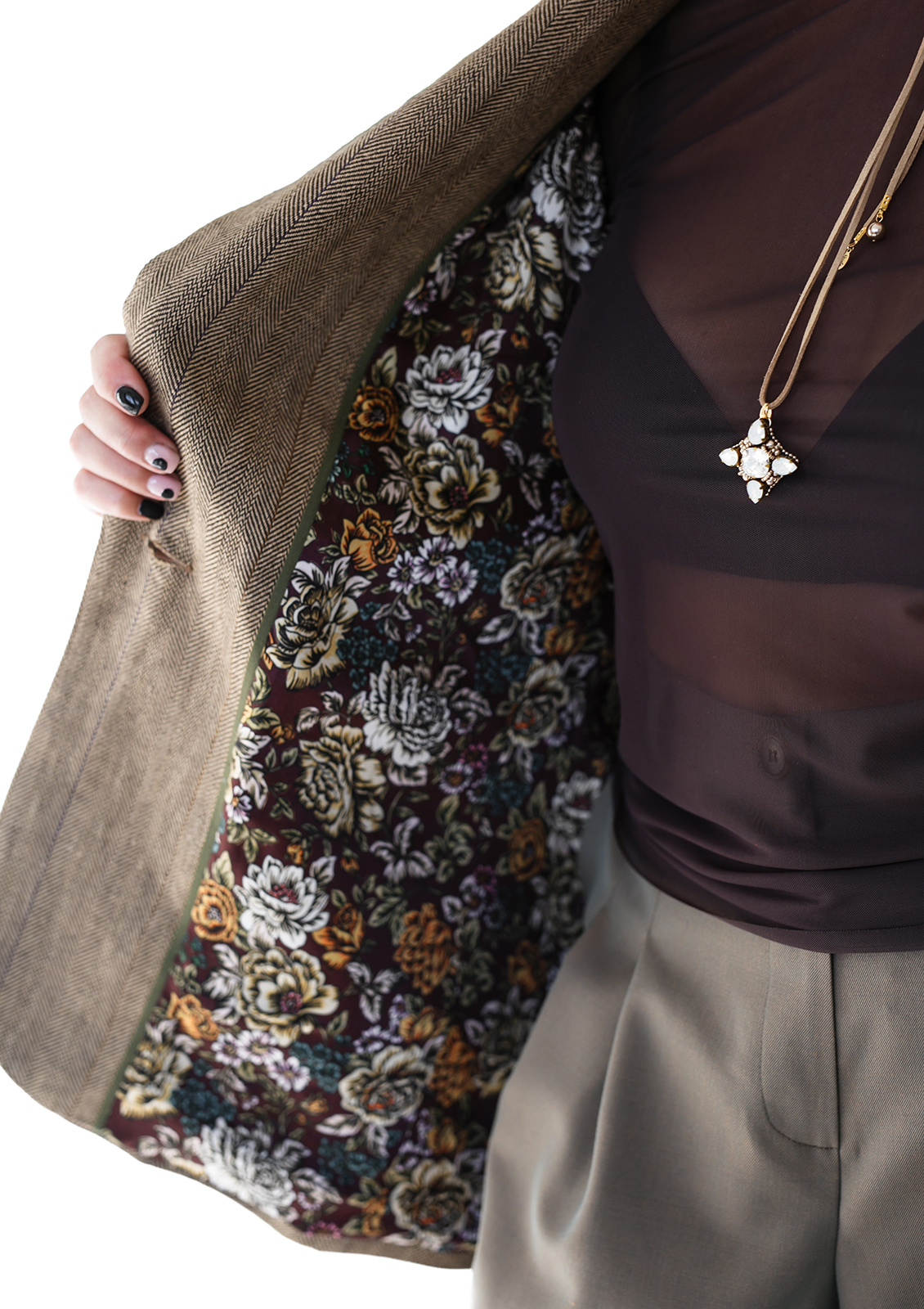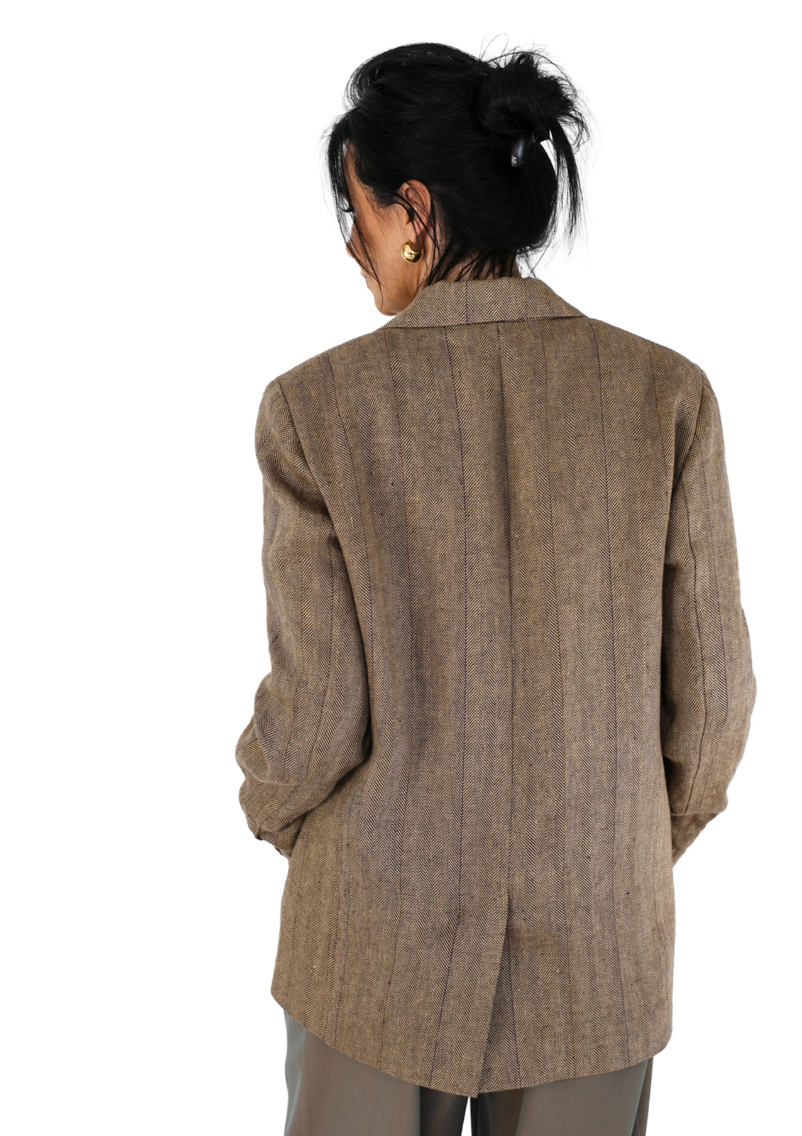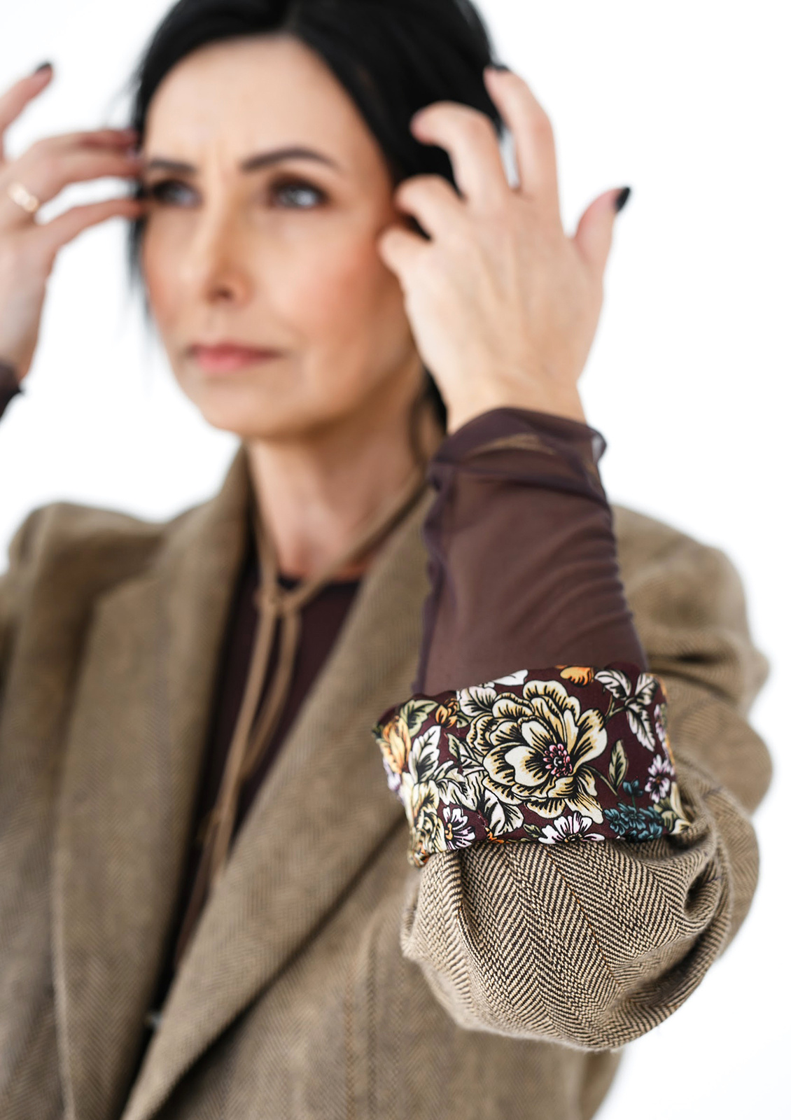 A classic staple with character. This slightly oversized wool jacket, featuring a subtle texture and single-breasted closure, is designed to provide a foundation, warmth, and structure to your wardrobe. Its nuanced brown tone, inspired by earthy shades, radiates calm and presence, while the high-quality wool ensures all-day comfort. Every detail is thoughtfully considered — including the floral-patterned lining, serving as a stylish secret for the wearer.