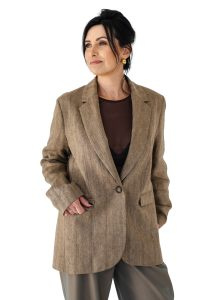 The jacket is crafted from durable, premium wool, ensuring it retains its shape and elegance for years to come.