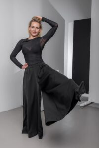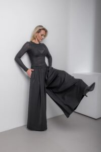 Tās ir bikses sievietei, kura novērtē komfortu, bet neatsakās no skaidras formas un elegances – piemērotas gan ikdienai, gan stilizētam vakara tēlam.